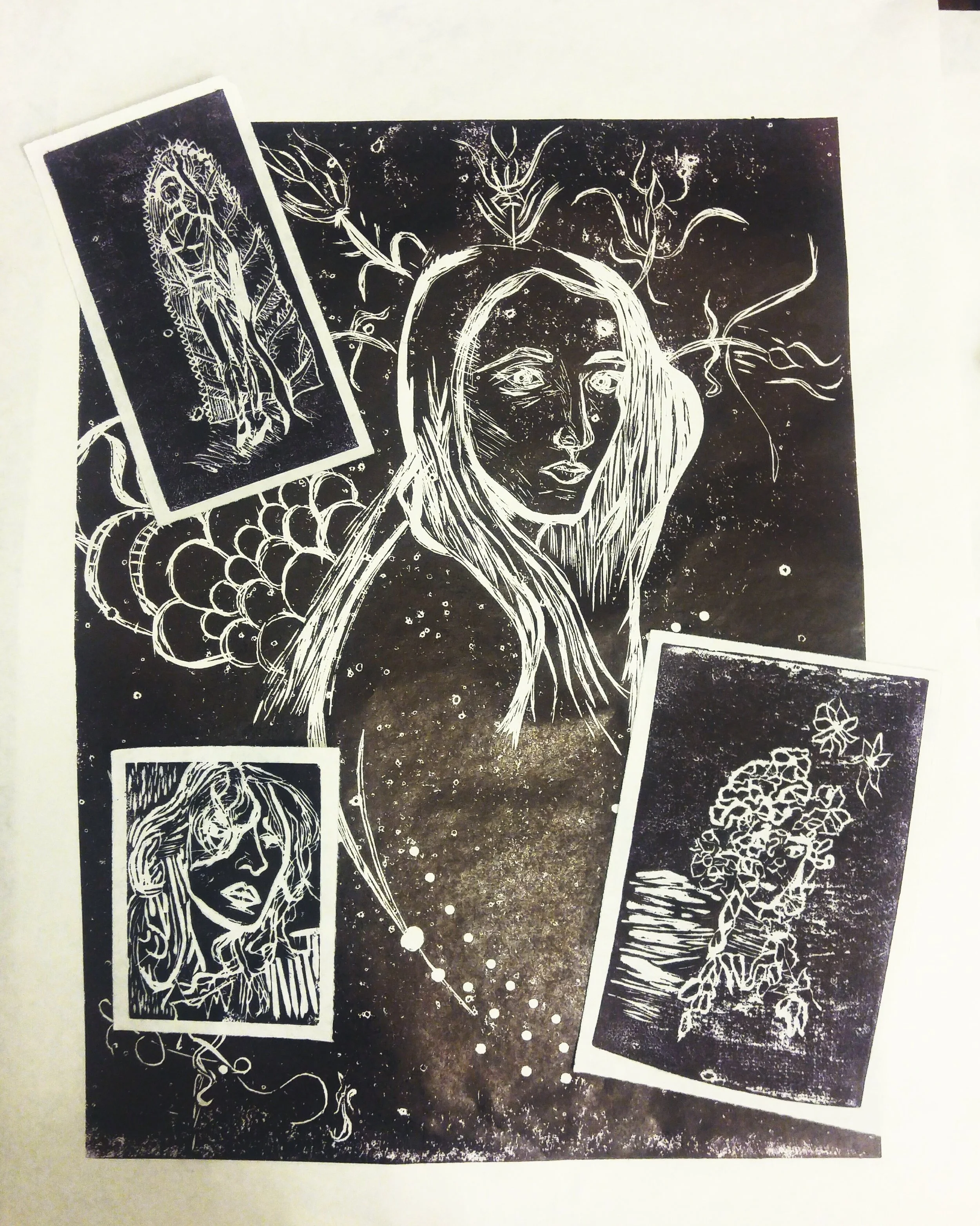 Who painted shadows and hung them on walls? (2017, Linoleum-block print on Japanese paper)
